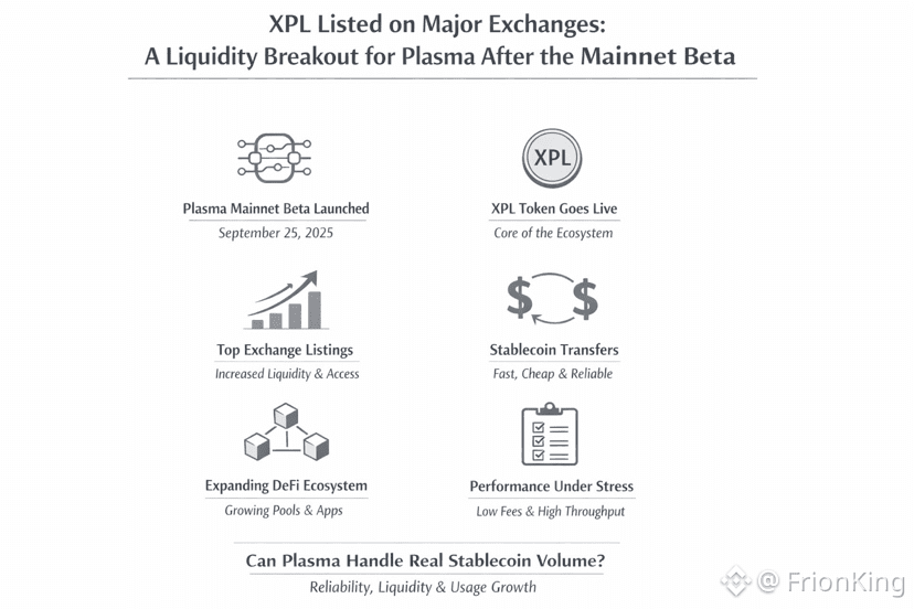 • For me, the real Plasma story after mainnet beta is not a single listing, it is whether liquidity becomes habit. XPL listing on a major exchange can be the spark, but the fire only lasts if there is fuel, that fuel is a product that works, stable low fees, deep liquidity, and an ecosystem with reasons for people to stay. I will be watching pool depth, slippage during peak hours, and the pace of stablecoin focused app expansion. And you, are you here for a quick wave, or are you looking for infrastructure tough enough to survive multiple cycles.