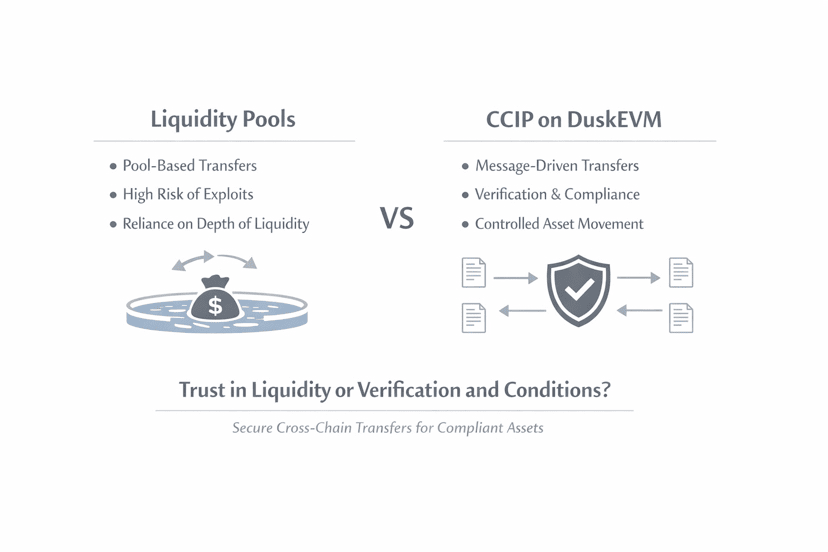Por supuesto, no estoy diciendo que la liquidez se vuelva innecesaria, la liquidez sigue siendo la sangre de los mercados, pero quiero separar los dos, la liquidez es para el comercio y el descubrimiento de precios, mientras que mover el estado de activos cumplidores debería minimizar la dependencia de modelos basados en pools que fácilmente se convierten en superficies de ataque, si DuskEVM ejecuta CCIP con eso en mente, es como colocar rieles adecuados para que los activos cumplidores viajen a través de múltiples cadenas sin apostar por un cubo de liquidez.