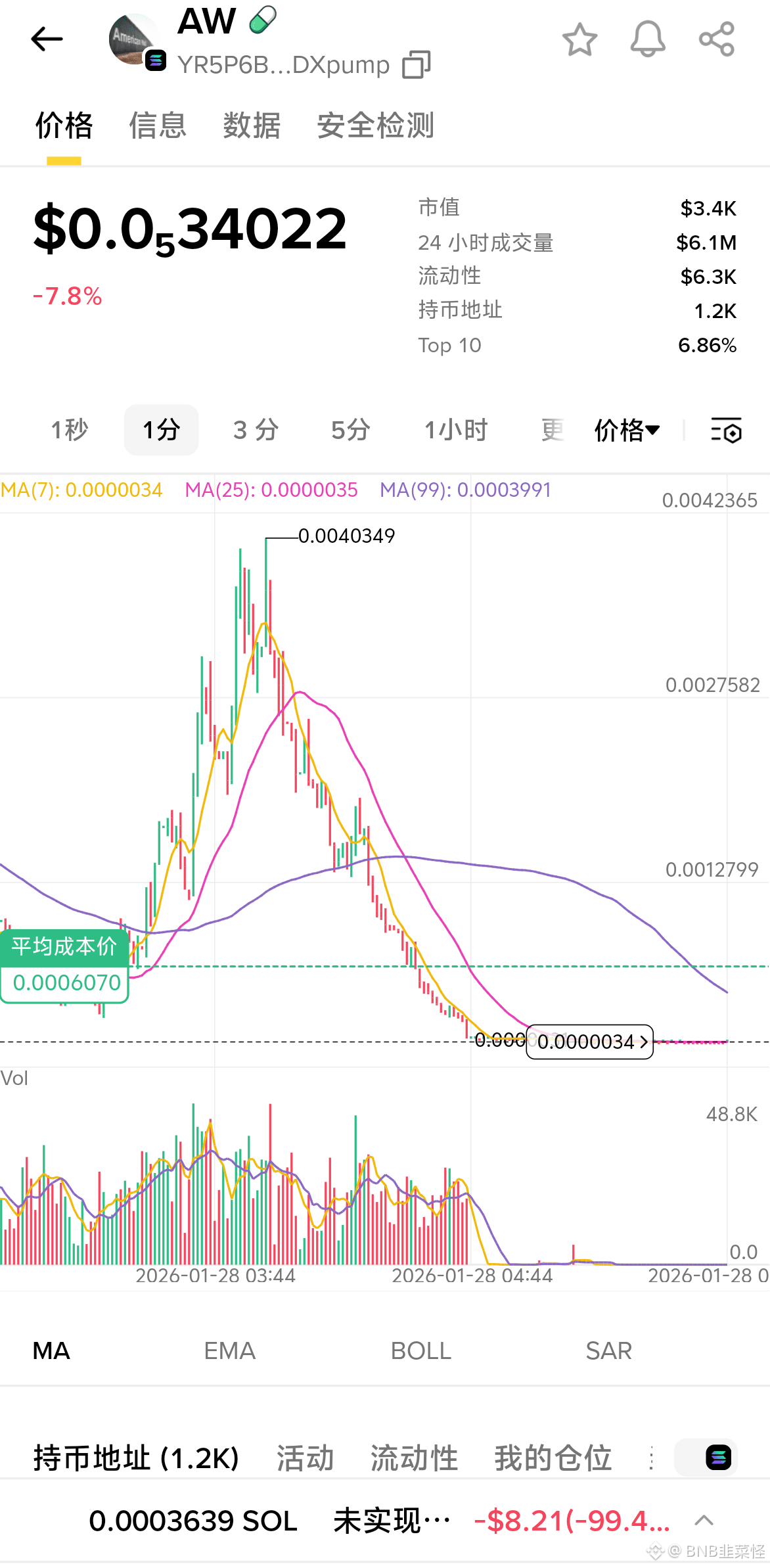 庄家舍得下血本拉盘,从200k起步,不到1小时就拉到1m附近震荡,这波操作直接吸引了1500名韭菜入场,我也没能幸免。后续庄家继续疯狂拉盘,价格最高冲到4m,这时我虽已撤出本金,却抱着看热闹的心态观望,没意识到这是最后的收割前奏。结果凌晨四点,币价直接归0,所有追高的韭菜全被收割!
