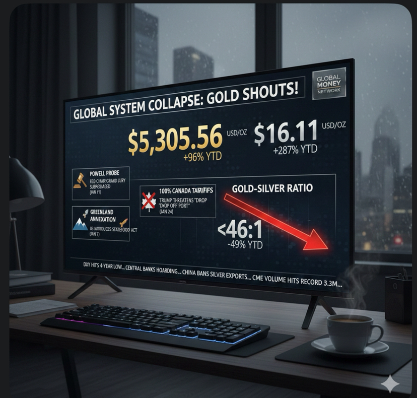 El movimiento casi vertical del oro no está ocurriendo en aislamiento. Está impulsado por el aumento del estrés geopolítico y una creciente pérdida de confianza en las instituciones que alguna vez anclaron el sistema financiero global. Las tensiones entre EE.UU. y la OTAN sobre Groenlandia han convertido un rincón helado en un punto de inflamación estratégico. Al mismo tiempo, las tensiones comerciales han escalado drásticamente, con EE.UU. flotando abiertamente aranceles del 100% incluso contra socios cercanos como Canadá.