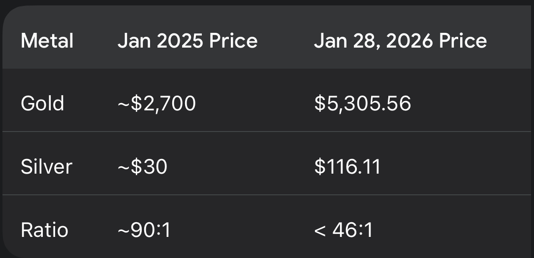 Wall Street claramente está tratando de alcanzar el ritmo. Los principales bancos están revisando pronósticos casi semanalmente, con algunos ahora proyectando $6,000 para el oro para la primavera e incluso planteando escenarios optimistas hacia $7,000+ si las guerras comerciales se profundizan o Washington tropieza con otro cierre.