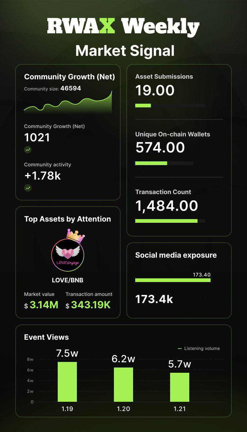 La escala de la comunidad ha llegado a 46,594 personas, con un crecimiento neto semanal de +1,021, interacción comunitaria de +1.78k, y exposición en el extremo X de 17.34万——esta es una etapa típica de "la discusión antes del precio". Las tres mesas redondas consecutivas, Space, han mantenido la atención centrada en el ecosistema RWAX, con un total de cerca de 200,000 oyentes en tres días, lo que indica que la atención no es solo un flujo de tráfico, sino una fermentación continua.