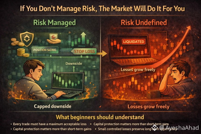 Many beginners focus on finding the right trade. Very few focus on managing the possible loss. This is where most accounts fail. Risk management is not about predicting the market. It is about deciding how much damage a single mistake is allowed to cause.
