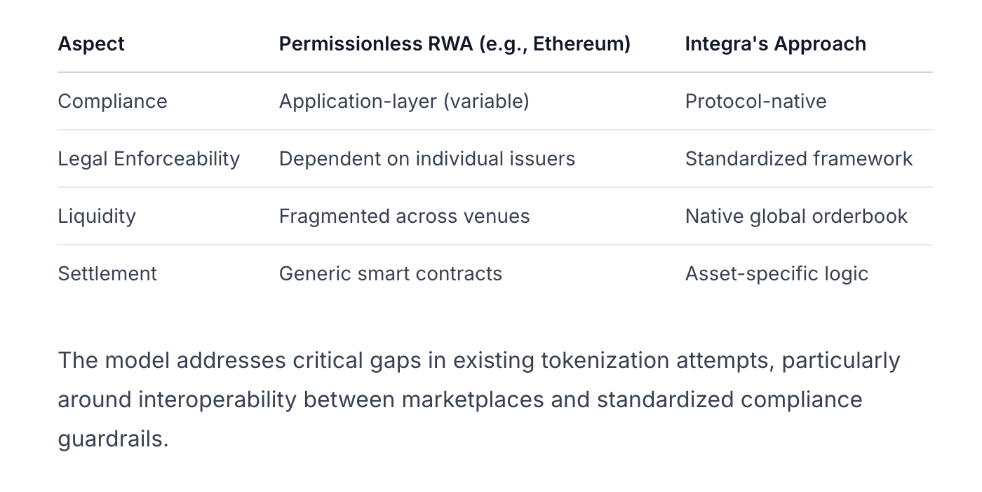 El modelo aborda brechas críticas en los intentos de tokenización existentes, particularmente en torno a la interoperabilidad entre mercados y barandillas de cumplimiento estandarizadas.