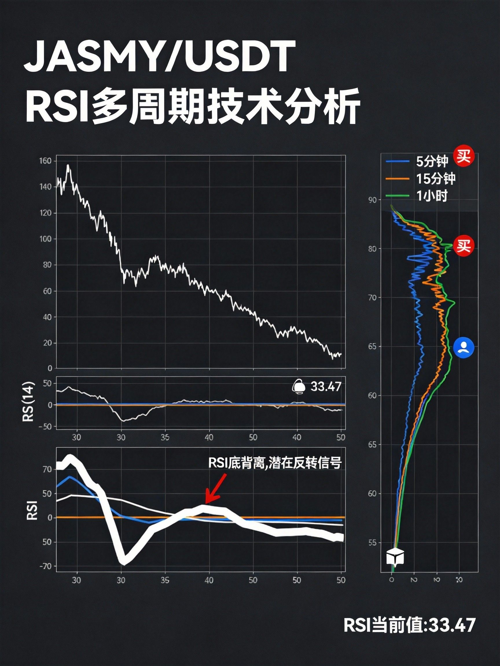 Hola amigos, soy Xiao Hai. Hoy analizo $JASMY — una criptomoneda de nicho que ocupa el puesto 199 por capitalización de mercado, con un precio de solo 0.0068 dólares. En el aspecto técnico hay tres señales positivas: RSI sobrevendido, ruptura de un triángulo descendente, y alineación alcista de medias móviles. Pero también existen riesgos, así que analicemos de manera racional.