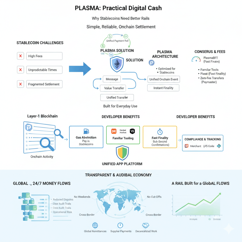 Plasma está surgiendo como uno de los diseños de blockchain más prácticos para los pagos de stablecoins, no persiguiendo trucos, sino resolviendo un problema del mundo real: hacer que el dinero digital simplemente funcione. En un ecosistema lleno de blockchains de alto rendimiento y aplicaciones DeFi llamativas, la promesa central de Plasma es simple: una infraestructura de pago unificada donde las stablecoins se mueven de manera confiable, predecible y con liquidación final en la cadena.