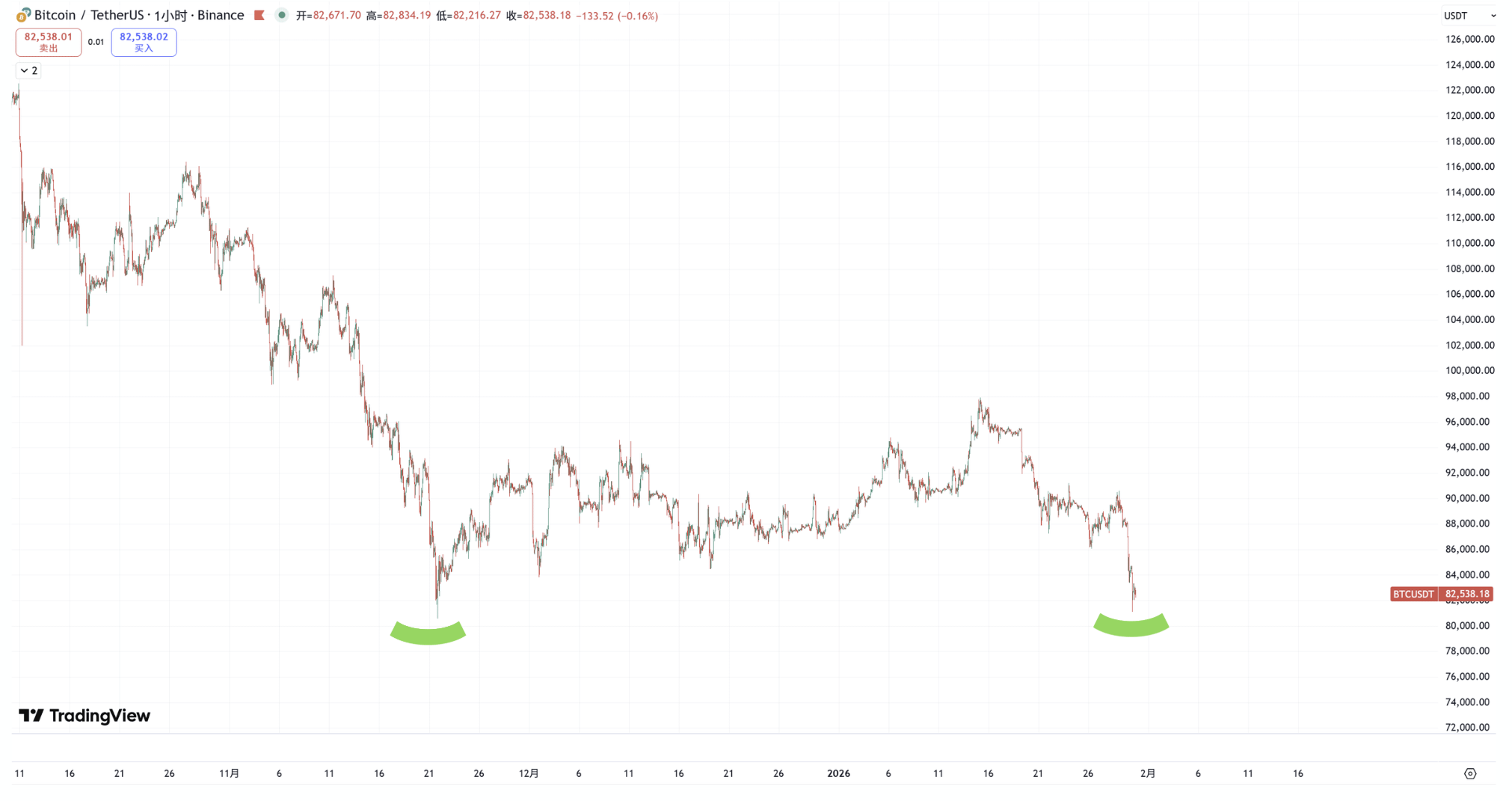 1. Como se muestra en la imagen, el bitcoin ha caído a 81,000 en soporte, aquí es donde terminó la caída anterior, formando un doble fondo, hay una buena probabilidad de que rebote un poco. ¿Y después? ¿Seguirá cayendo?