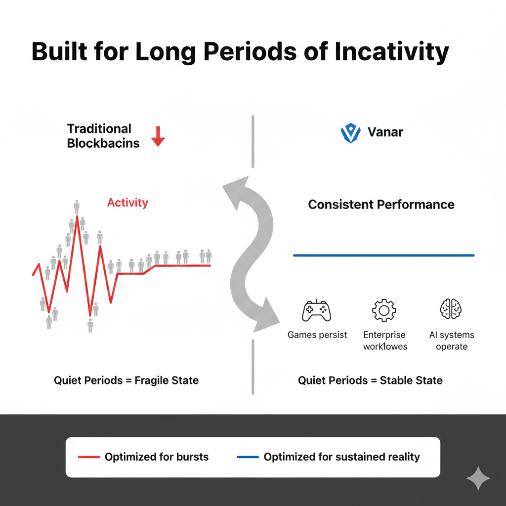 Vanar no parece estar persiguiendo atención. No depende de la emoción para funcionar. Se mantiene utilizable durante largos períodos de inactividad.