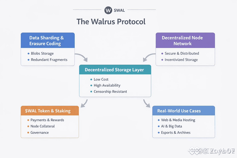 Walrus is best understood as an attempt to make large-scale data a native and programmable part of blockchain systems rather than something awkwardly bolted on at the edges. Traditional blockchains are excellent at tracking small pieces of state and value, but they are fundamentally inefficient for storing large files such as datasets, media, model weights, or application resources. Walrus was designed to bridge this gap by introducing a decentralized storage protocol that treats big binary objects, referred to as blobs, as first-class resources that can be securely stored, verified, and referenced by smart contracts. Built to operate on the Sui blockchain, Walrus leverages Sui’s object-centric architecture and high-throughput execution model to coordinate storage commitments, payments, and proofs while keeping the heavy data payloads off the core transaction ledger.
