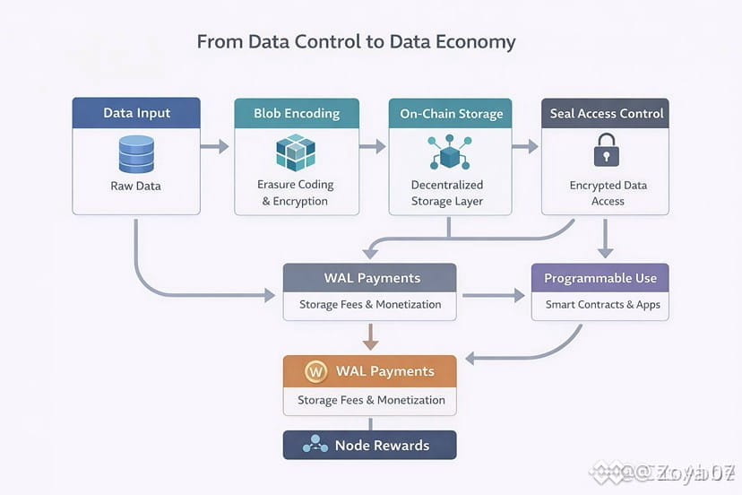 In practical terms, Walrus is positioned as infrastructure for developers building decentralized websites, DeFi applications that depend on large off-chain data, AI agents that require persistent datasets or model parameters, and enterprises looking for alternatives to traditional cloud storage. Because data stored in Walrus can be referenced and verified on-chain, it becomes possible to build systems where payment, access, and provenance are all enforced through smart contracts. For example, an application can automatically revoke access when a storage subscription expires, or distribute revenue to data providers based on verifiable usage, all without relying on centralized intermediaries.