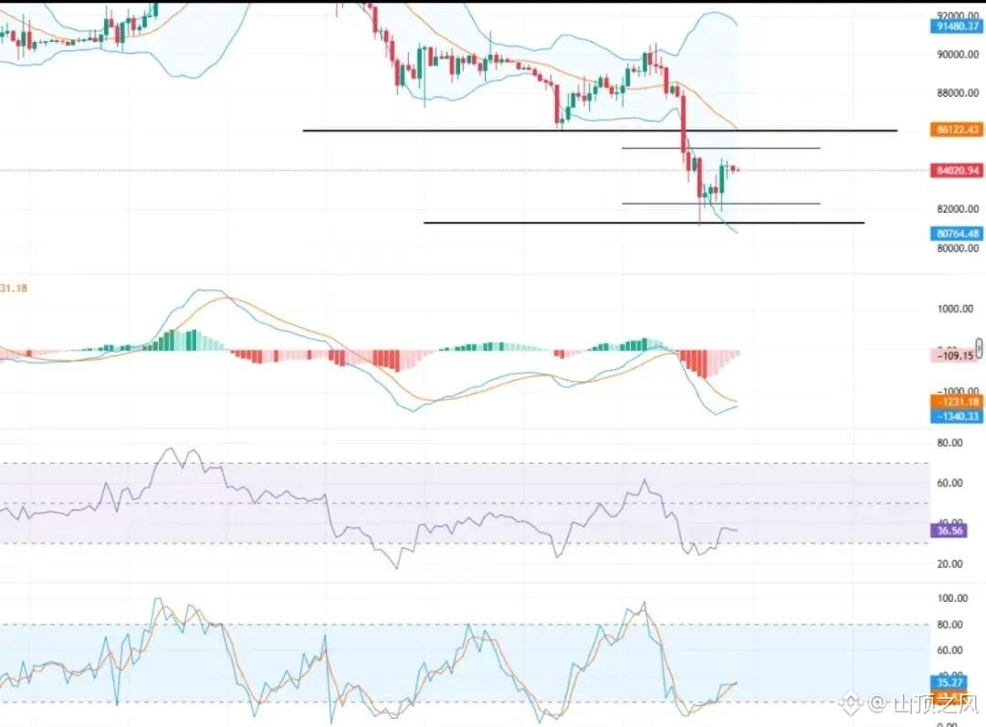 • 上方阻力:短期重点关注 85000,以及 4 小时中轨附近的 86000 区域。若价格有效站稳该区域,才有望重新积聚上行动能。