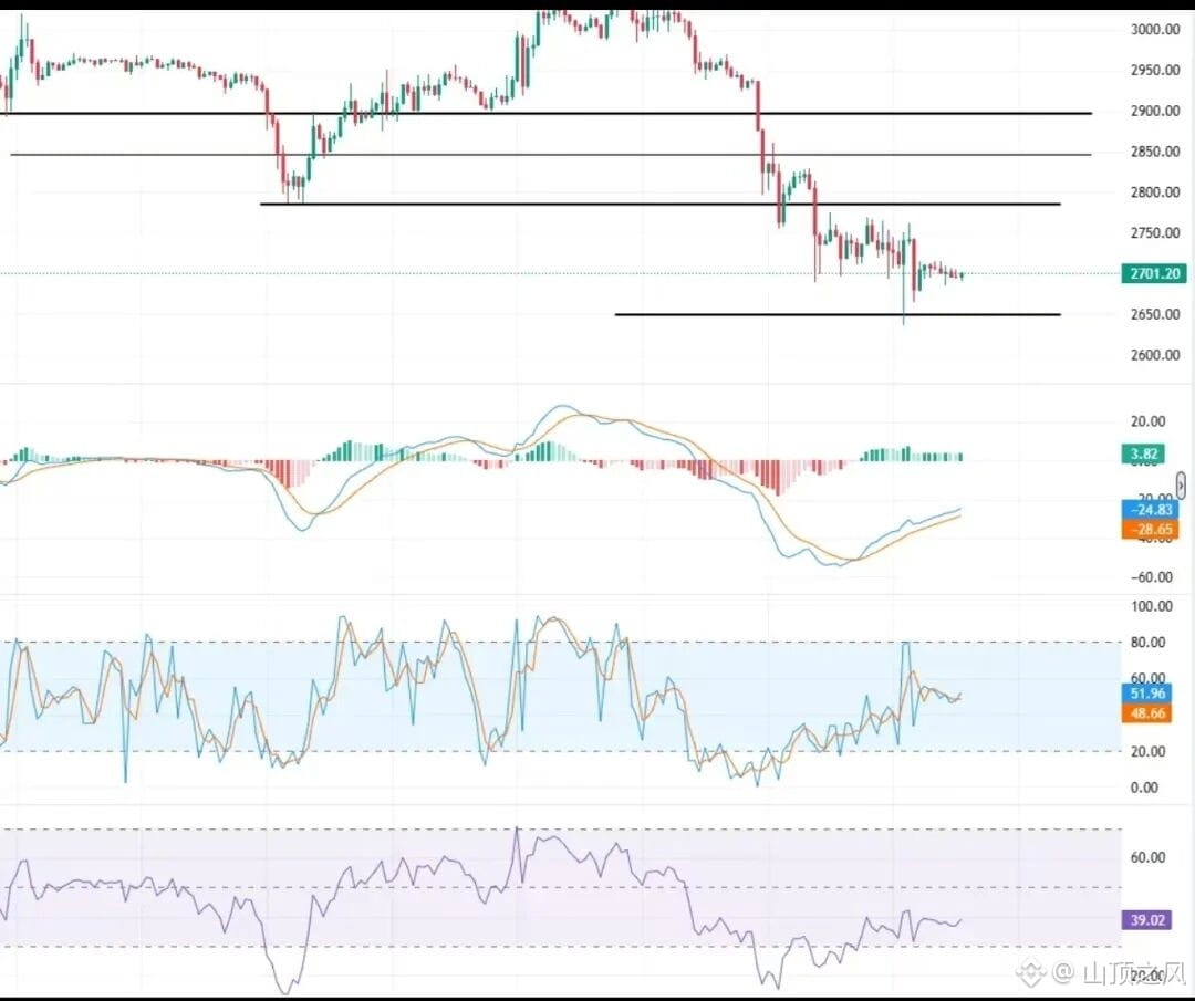 • 下方支撑:重点观察 2670 与 2640 两个位置,这里是前一轮反弹启动区域,若跌破,结构将进一步转弱。