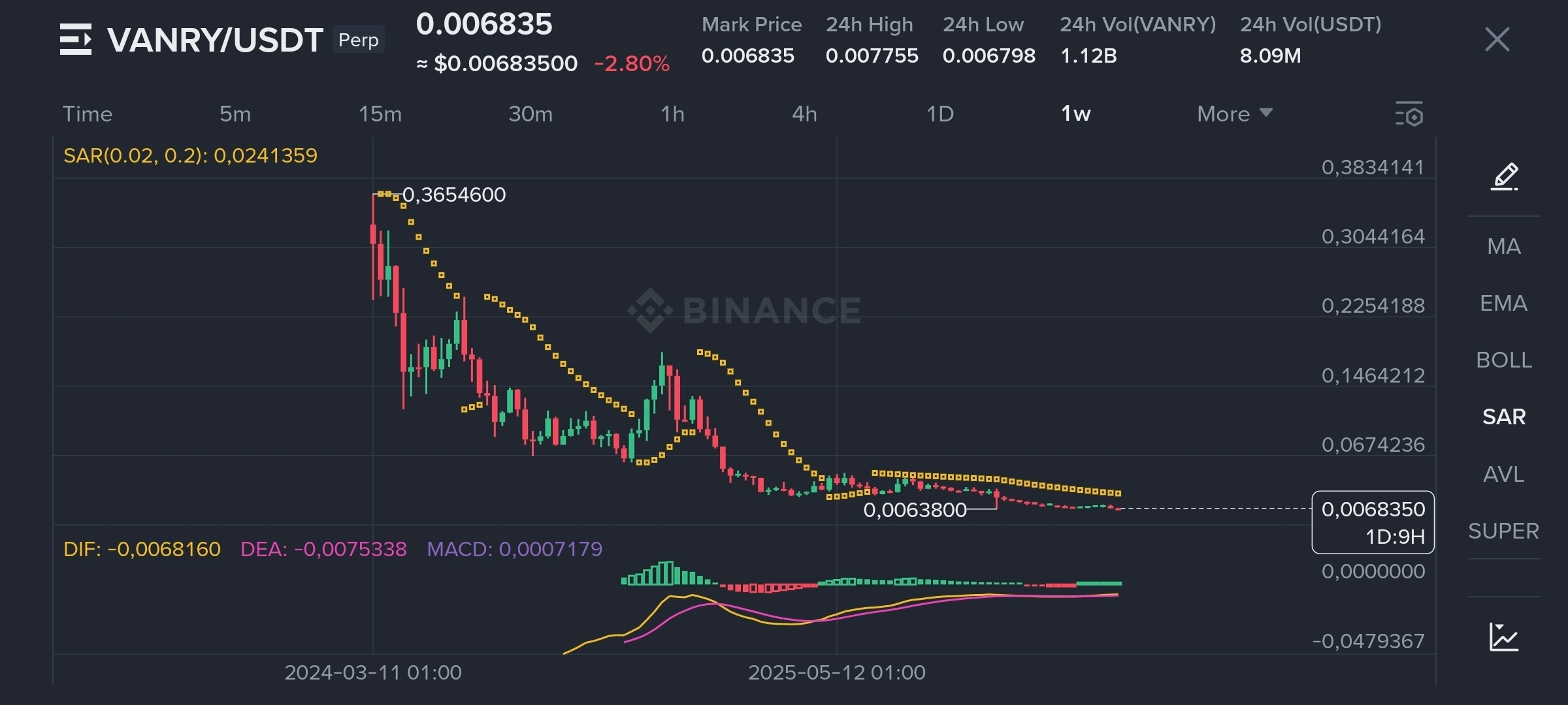 •Soporte: El nivel absoluto que "debe mantenerse" es $0.0068. Hemos visto a los compradores defender esta zona agresivamente dos veces en las últimas 24 horas.