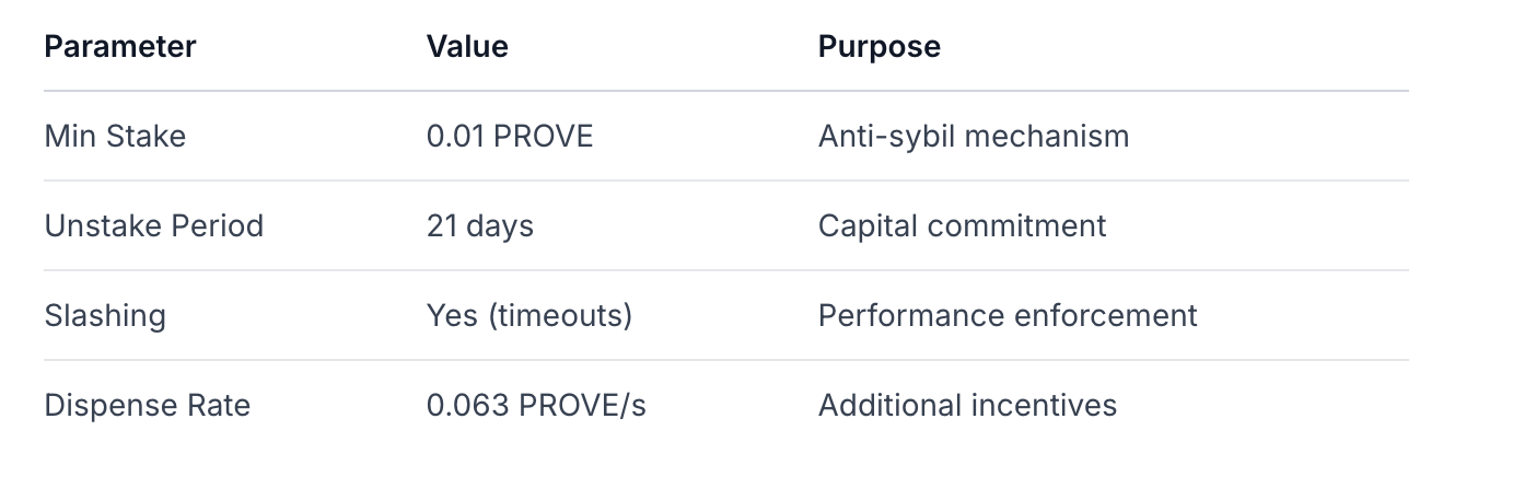 El modelo económico alinea incentivos en torno a la reducción de costos: los probadores deben mejorar continuamente la eficiencia para competir en subastas, mientras que el protocolo captura valor a través de tarifas del tesoro.