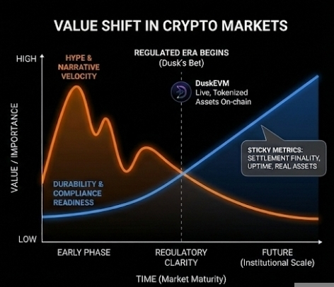 Sin embargo, la paciencia podría ser el punto. La mayoría de las cadenas de bloques optimizan la velocidad de adopción. Dusk optimiza la durabilidad. Esa diferencia se muestra en métricas que rara vez tienden en los feeds sociales.