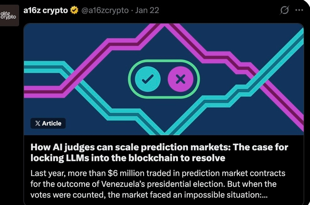 Mientras el mercado busca su dirección, los gigantes como a16z trabajan en "la capa faltante" de la cripto: El arbitraje por la Inteligencia Artificial.