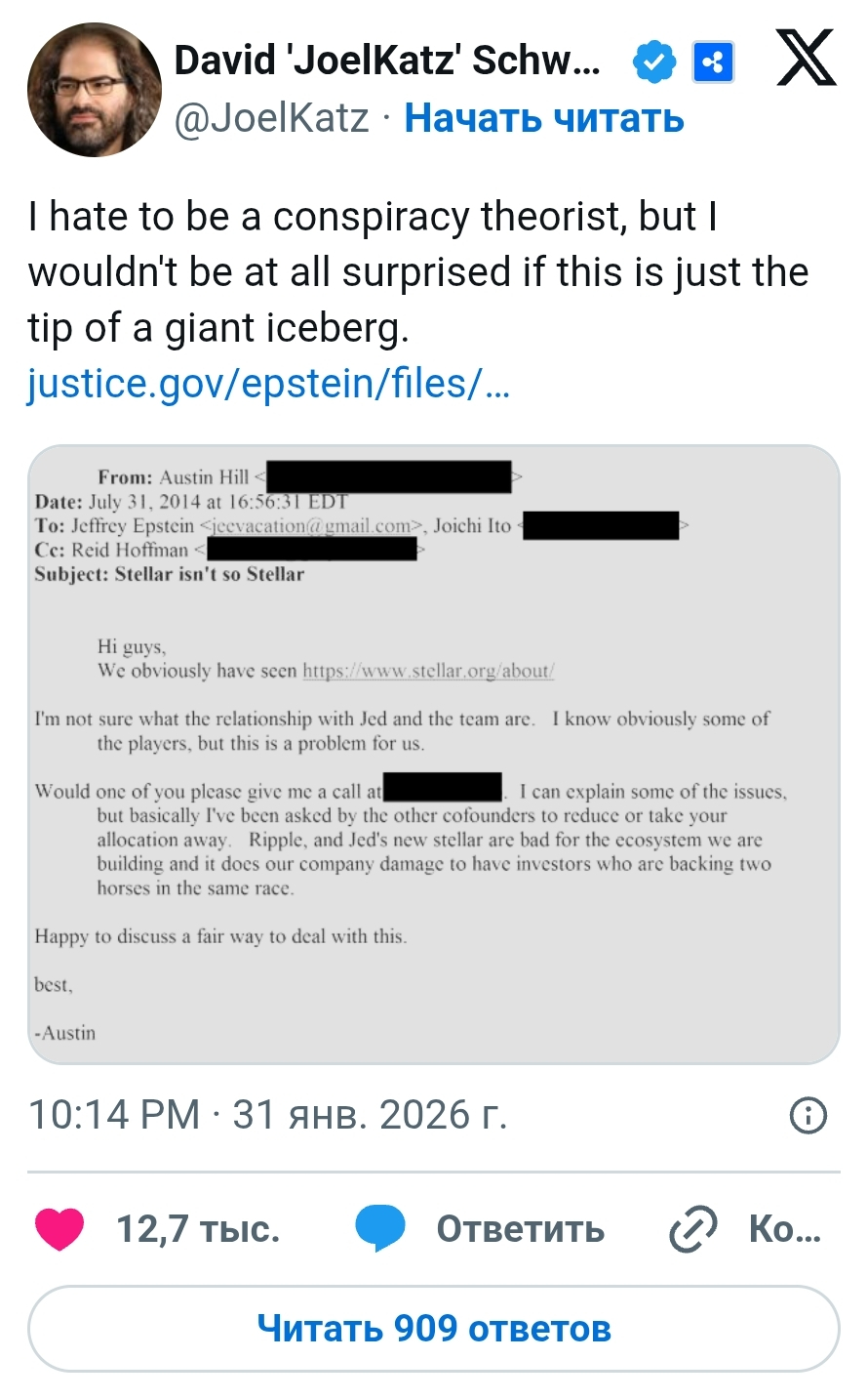 Los últimos datos de los archivos de Jeffrey Epstein indican que el difunto partidario de Bitcoin estuvo involucrado en un movimiento encubierto para socavar a los competidores, especialmente Ripple ( $XRP ) y Stellar ( $XLM ). En una carta de 2014, el empresario canadiense Austin Hill consideraba a Ripple y Stellar como amenazas para el ecosistema de Bitcoin.