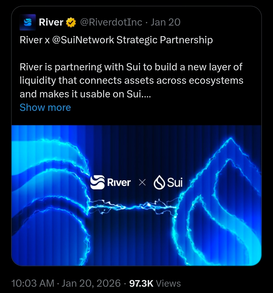 Al combinar el marco de stablecoin abstracto en cadena de River con la infraestructura de blockchain de alto rendimiento de Sui, están creando un flujo de valor sin interrupciones a través de redes.