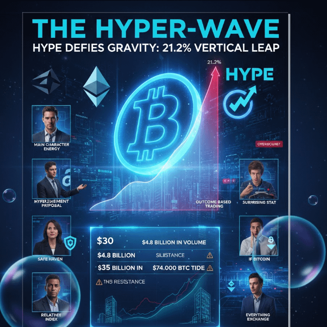 En un mundo donde Bitcoin sangra, un token ha decidido volar. Mientras el resto del mercado lame sus heridas, Hyperliquid (HYPE) acaba de realizar un impresionante salto vertical del 21.2% hoy, demostrando que la "Energía del Personaje Principal" es real en Web3.