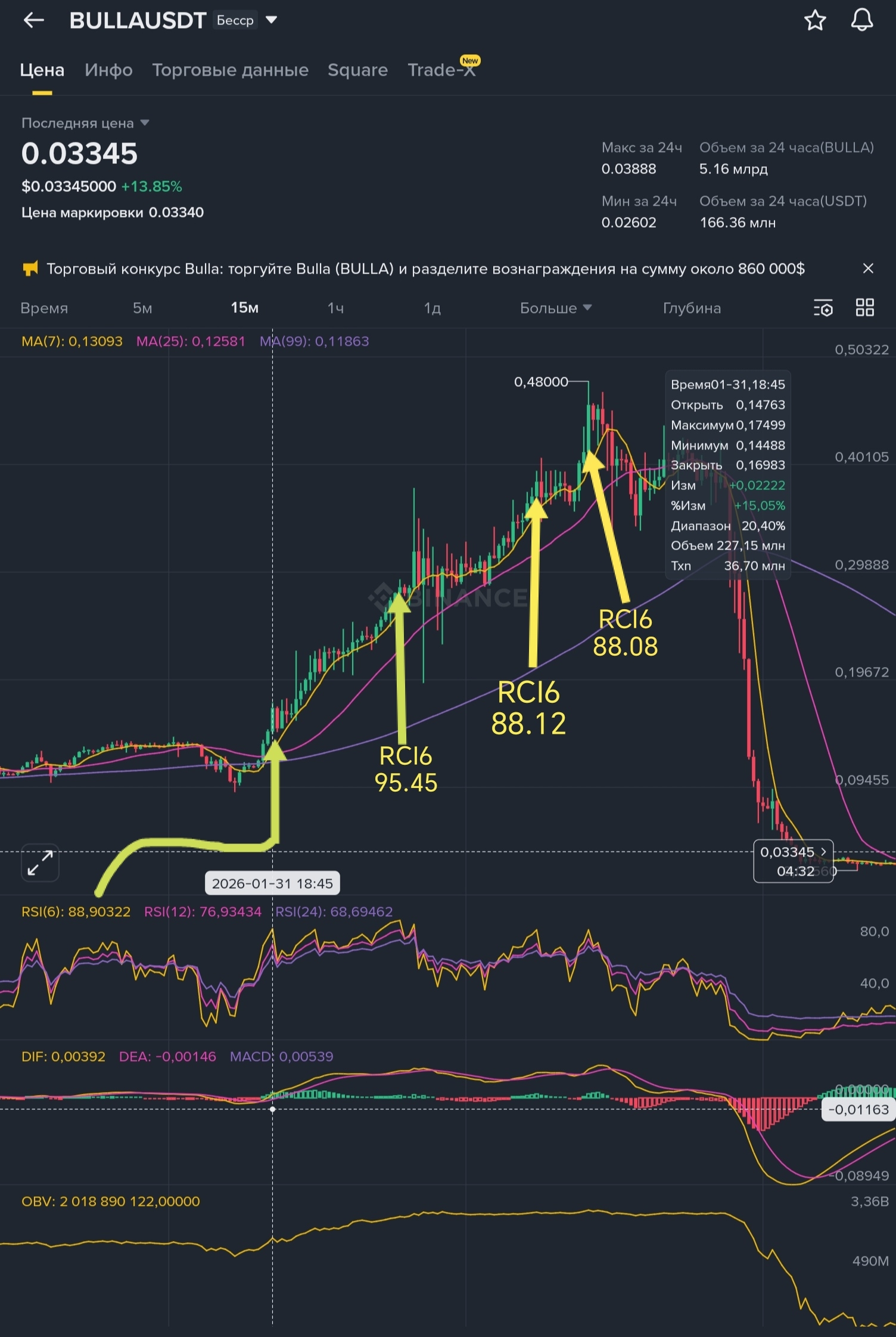 Рассмотрим такие индикаторы как: МА, RSI, MAKD, VOL и OBV. На 15 минутном графике с примерами использования. Сразу скажу, нет идеального индикатора, все нужно использовать вместе👫 И сегодня мы научимся это делать👍