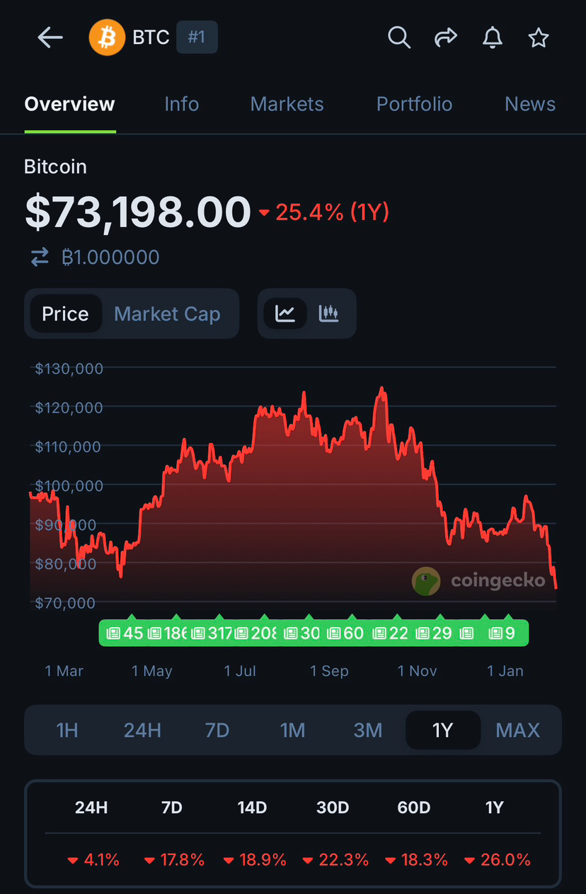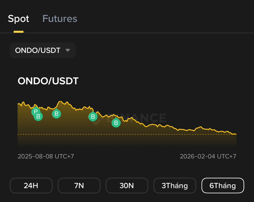 Seis meses después, el mercado entregó una respuesta clara. Bitcoin corrigió y se movió de lado dentro de un rango controlado, manteniendo la estructura de un activo de ciclo temprano. ONDO, por otro lado, continuó en declive a pesar de su narrativa y expectativas. El resultado no necesita adornos: actualmente estoy perdiendo alrededor del 70%.
