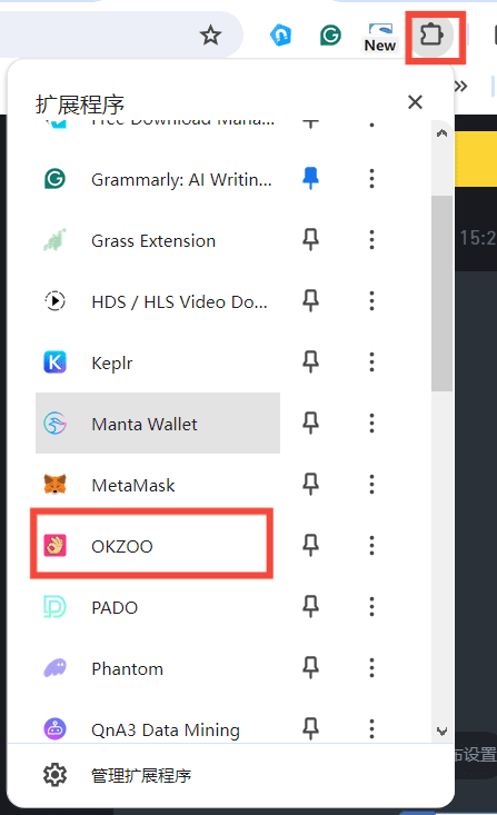 2. Una vez instalado el complemento, haga clic en administración de complementos en el lado derecho del navegador y haga clic en OKZOO