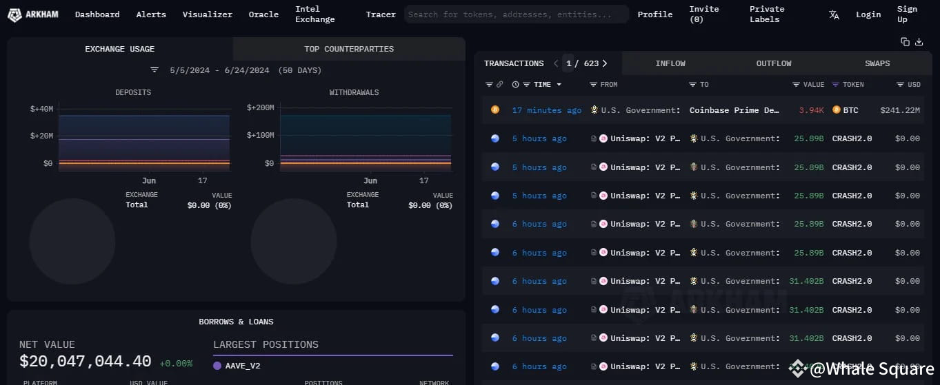 A crypto wallet known to be controlled by the US government recently transferred around 3,940 Bitcoin (BTC), worth $241 million, to Coinbase, according to data from Arkham Intelligence. The wallet currently holds approximately $13.3 billion worth of Bitcoin. This is ash is tied to the seizure of Bitcoin from Silk Road, a notorious dark web marketplace that was shut down in 2013.