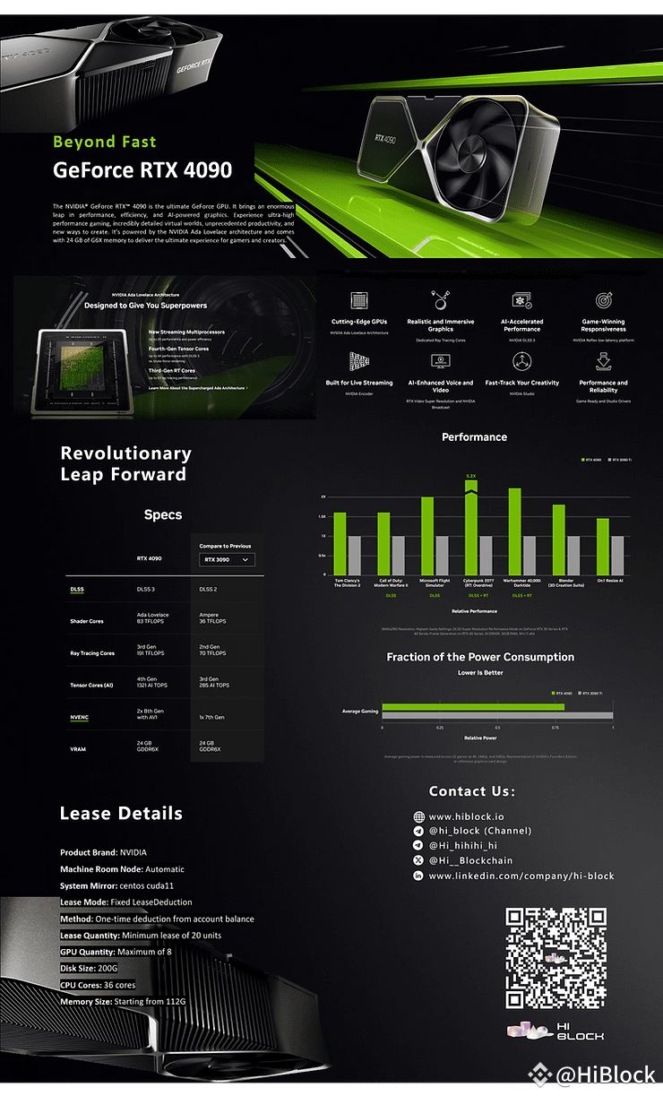 Nvidia GeForce RTX 4090 Product Overview: The one-stop computing power service launched this time will use Nvidia’s latest GeForce RTX 4090 graphics card. GeForce RTX 4090 is one of the most powerful consumer-grade GPUs on the market today, using the latest NVIDIA Ada Lovelace architecture, with up to 16384 CUDA cores, equipped with 24GB of GDDR6X memory, and supports advanced technologies such as ray tracing and deep learning super sampling (DLSS). Its powerful computing power and graphics processing performance can meet the most demanding computing needs and are ideal for AI training, scientific computing, and high-end game development.