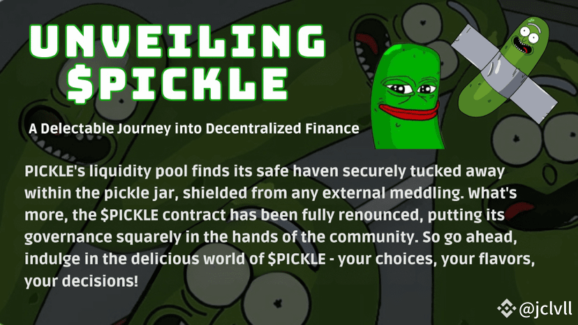 $PICKLE blends community engagement, financial security, and technological innovation, redefining decentralized finance. Its commitment to transparency, innovation, and user empowerment shapes a thriving decentralized ecosystem, making it a promising investment for those looking to explore the dynamic world of #DeFi.