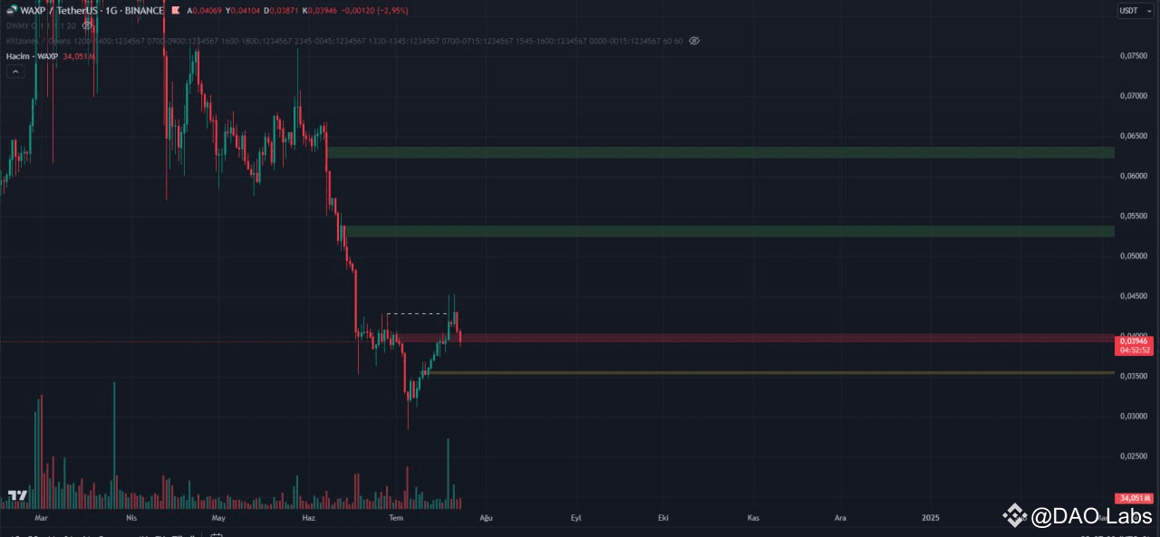 If we see closes below the red zone (0.040-0.039), we may see a retreat towards the yellow zone (0.036-0.035). In the positive scenario, the price we expect in the medium term is 0.05200