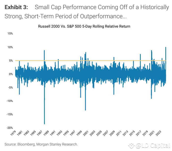 小盘股的相对强势程度刷新历史最高水平,考虑到这种轮动可能缺乏基本面和宏观层面的持久支持