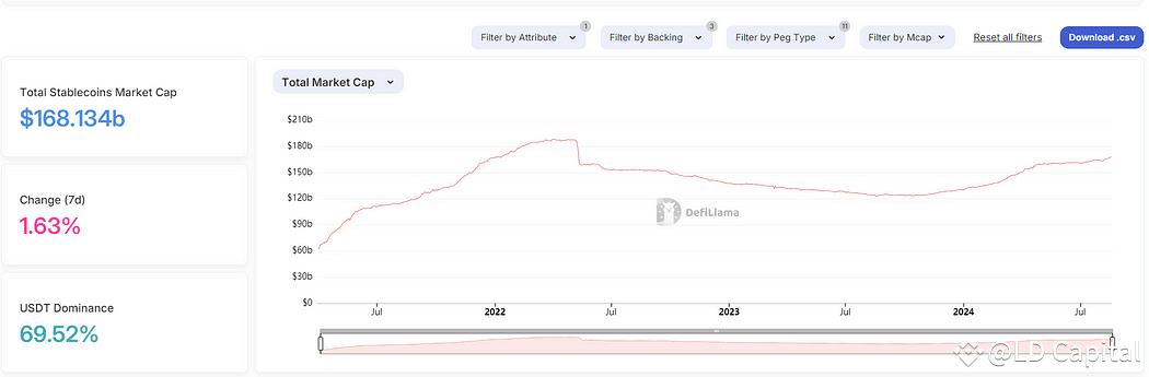 尽管近期市场交易低迷,情绪不高,但是场内稳定币总量依然在缓慢积累,现达到本轮周期以来最高水平,约为1680亿美元。