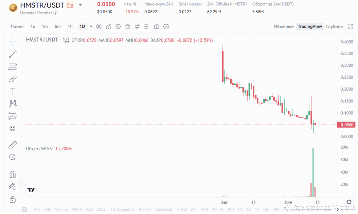 Премаркет Hamster Kombat был открыт в июле на бирже Байбит и нескольких других криптовалютных платформах. Первые цены токена Хомяка указывали на позитивное настроение инвесторов и в среднем составляли 0,07 доллара. Однако за два месяца вокруг игры было много негативных новостей и слухов, что привело к снижению предварительной цены, минимальное значение было зафиксировано на уровне 0,001$. Сейчас стоимость Хомяк коина на той же бирже Bybit равна 0,05$. При этом рыночная капитализация токена пока никак не оценивается. И хотя покупка криптовалюты через USDT является признаком стабильности, но это не воодушевляет инвесторов, которые готовы продавать будущий дроп даже по сниженным ценам. Важен и еще один факт. Листинг криптовалют на биржах чаще всего сопровождает дампом цены, так как выходят слабые руки, то есть те, кто получил дроп и торопятся сбросить его независимо от цены. Стоимость Hamster в таком случае может сильно просесть.