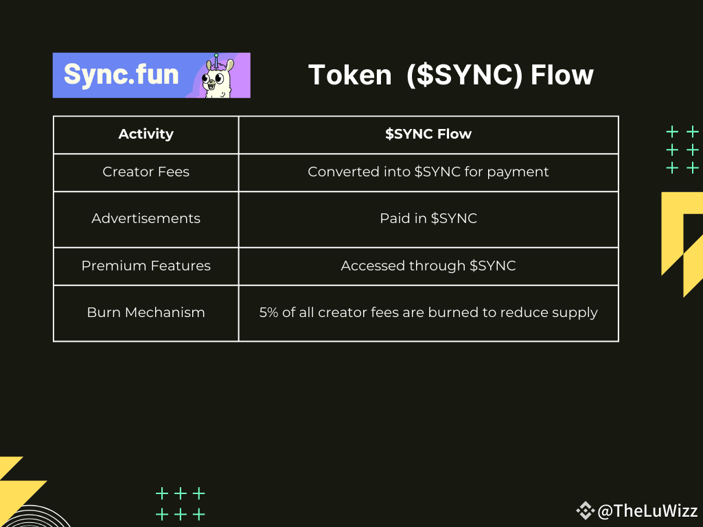 This setup means that as more users sync their wallets and creators build portfolios, the demand for $SYNC grows, while its supply decreases — a win-win for everyone holding the token.