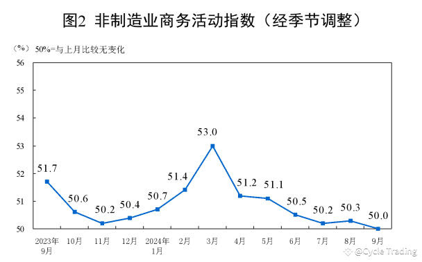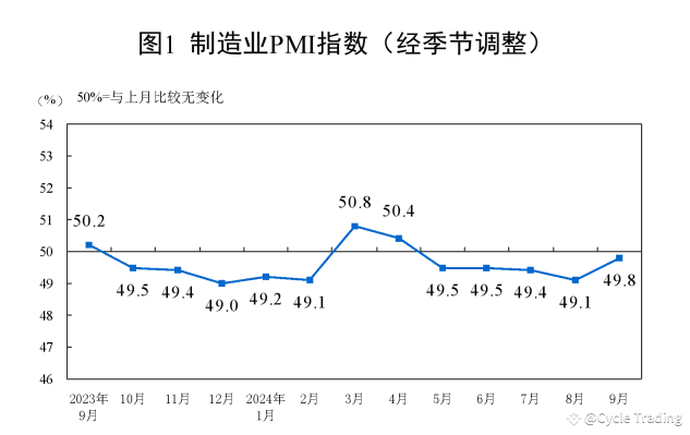 9月份,制造业采购经理指数(PMI)为49.8%,比上月上升0.7个百分点,制造业景气度回升;非制造业商务活动指数为50.0%,比上月下降0.3个百分点,非制造业景气水平小幅回落。