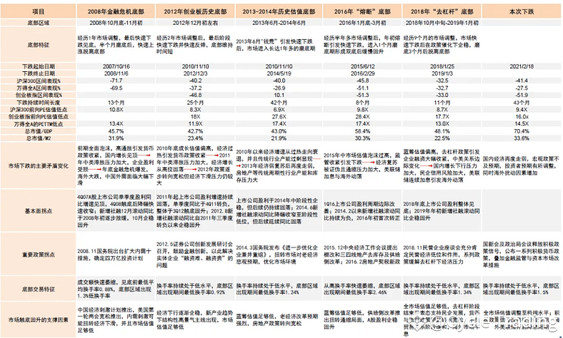 梳理历次市场底部特征,从下跌的时间长度、下跌程度、估值水平等角度本轮行情都已经呈现出底部特征。