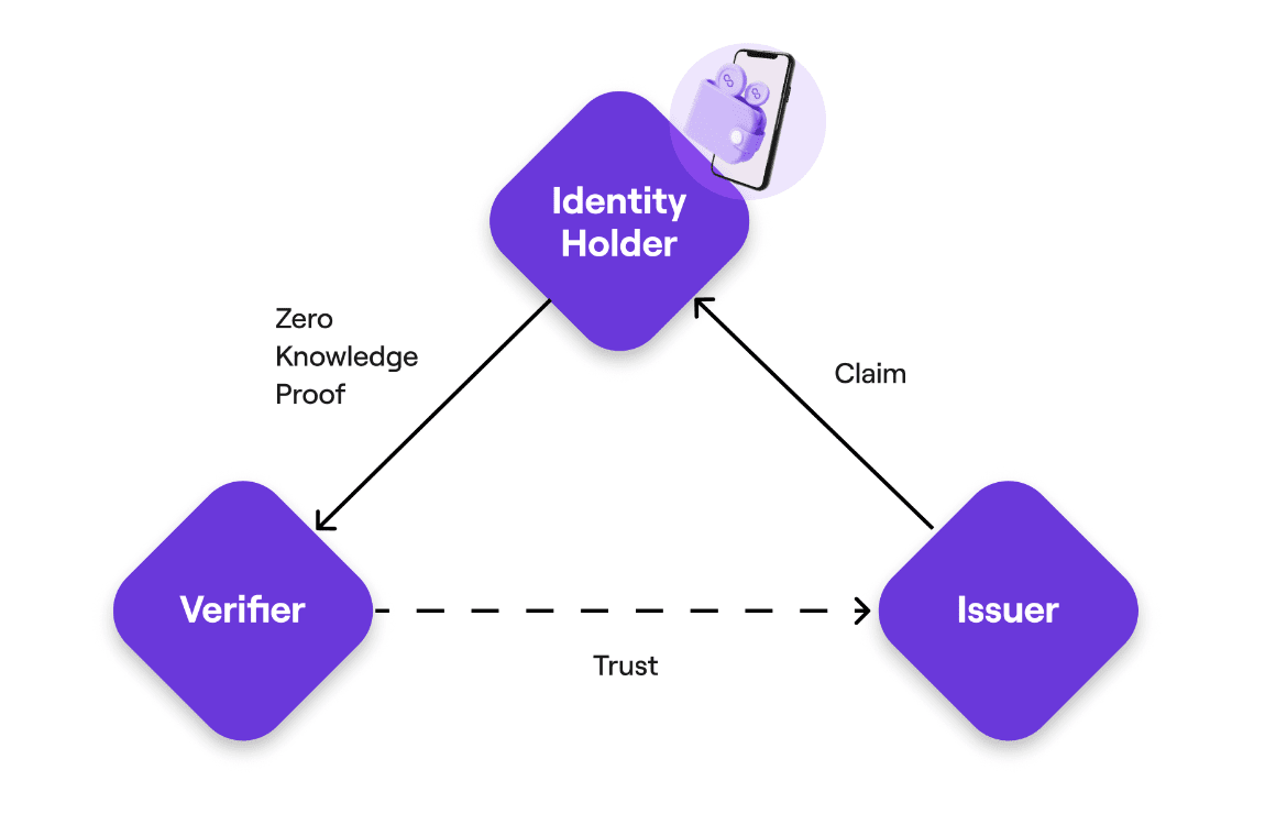 身份持有者:负责在其数字钱包中保护声明的实体。发行者向身份持有者颁发可验证凭证(VC)。随后,身份持有者负责为其收到的 VC 生成 ZKP,并将这些证明提交给验证者。验证者的角色是验证证明的真实性并检查其是否符合预先设定的标准。