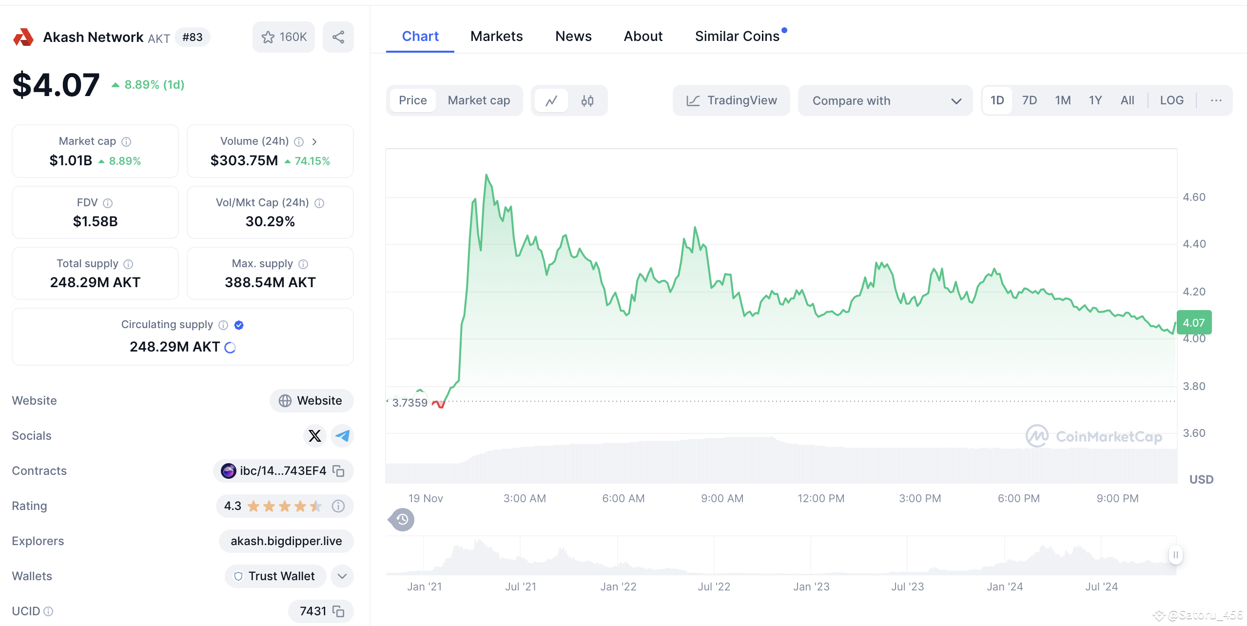 Akash Network (AKT) price action | November 19, 2024