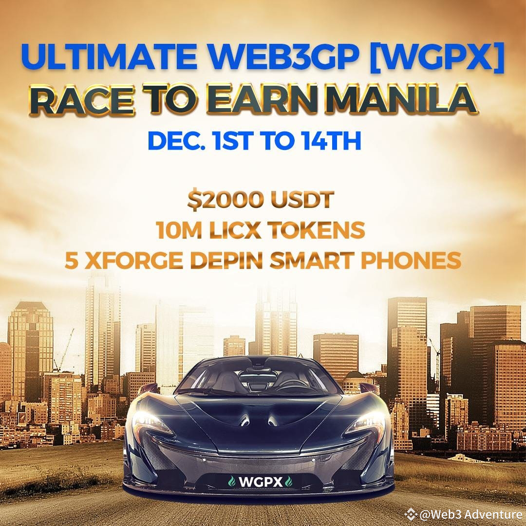 Manila, Philippines, Nov 29, 2024 — Web3GP (WGPX) is thrilled to announce the “Ultimate Web3GP” Manila Challenge, an exhilarating fusion of sim racing, Web3 gaming, and enticing rewards. Taking place from December 1 to 14, 2024, this dynamic event is designed to cater to racing enthusiasts, gaming fans, and Web3 aficionados alike. With a prize pool valued at over $2,000 USDT, 10 million LICX tokens, and five DePIN XForge smartphones, this challenge offers something for everyone.