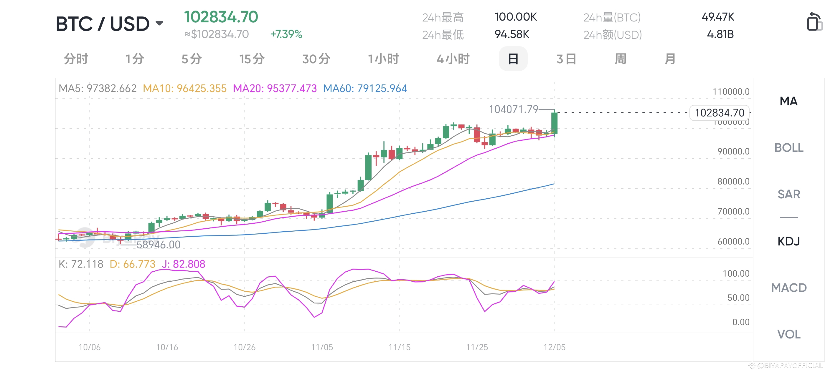 12月5日,比特币正式突破10万美元,日内上涨超5%,创历史新高。11月4日以来,比特币直接从6.8万美元上涨至10万美元,仅用时一个月,涨势惊人!
