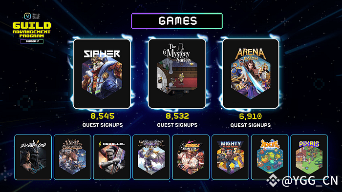 Sipher Odyssey在其GAP首秀中遥遥领先,任务注册量达8,545个,紧随其后的是Mystery Society的8,532个任务和Arena of Faith的6,910个任务。