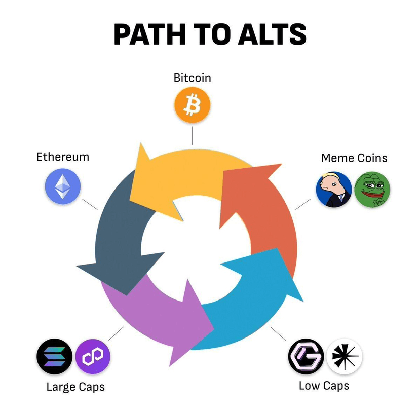 #crypto bull run cycle: BTC pump -> ETH + highcaps pump -> altszn