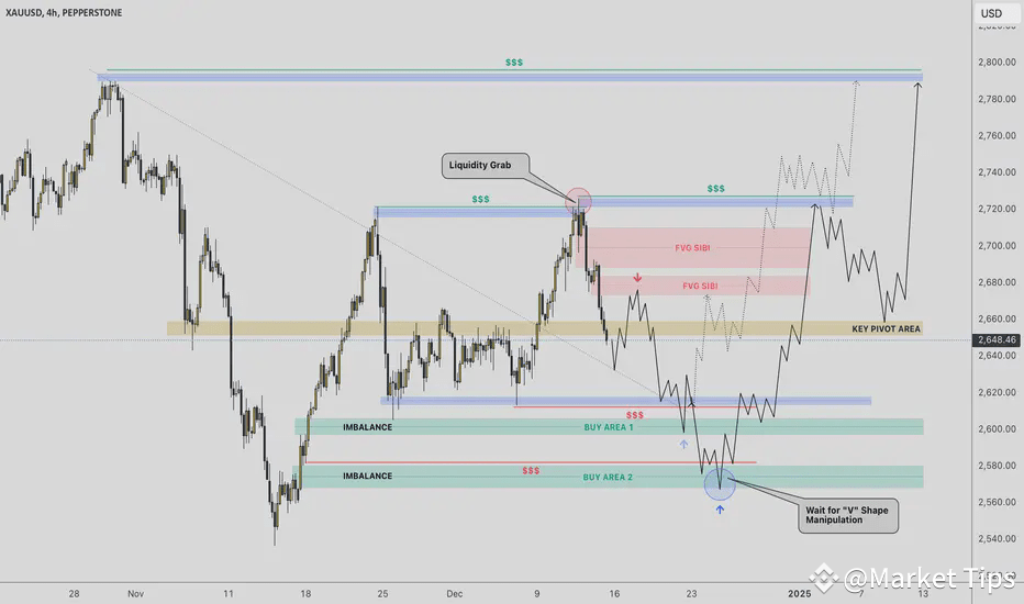 The market is selling all of that liquidity toward the lower side of the internal range, where there is a lot of sell-side liquidity below $2612 (near $2600) and below $2580 (near $2570 in extension).