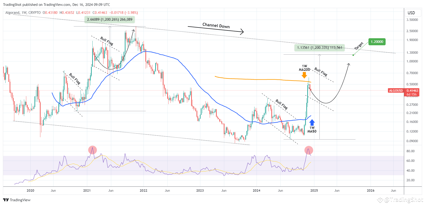 We expect a similar development and as the dominant historic pattern of Algo seems to be a Channel Down, the next rally can complete a +1200% rally just below the pattern's top (Lower Highs trend-line) at $1.200.