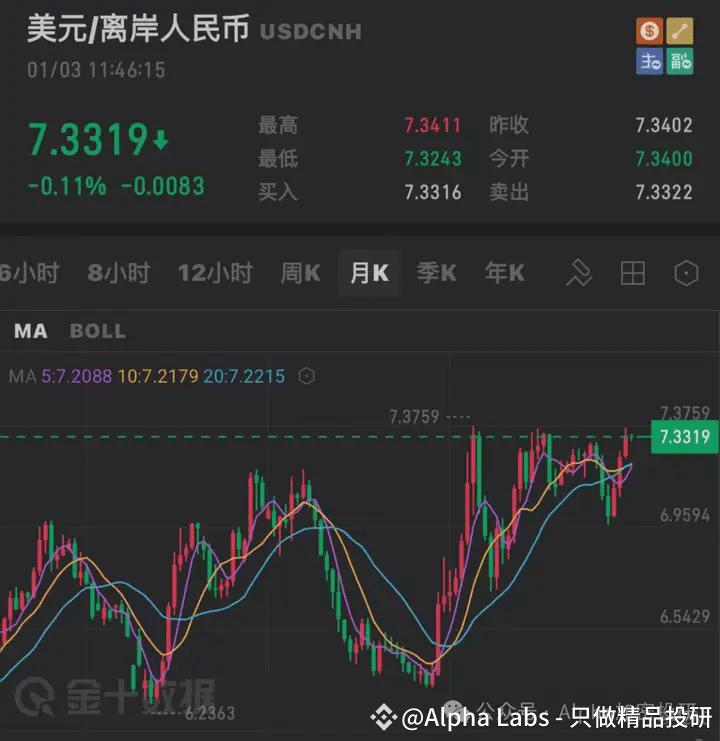 1、人民币汇率不断新低,目前7.33,创22年10月以来新低