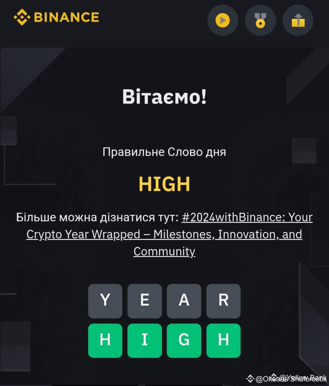 Щоб отримати винагороду за участь в грі від біржі BINANCE переходьте за посиланням та отримайте свої винагороди