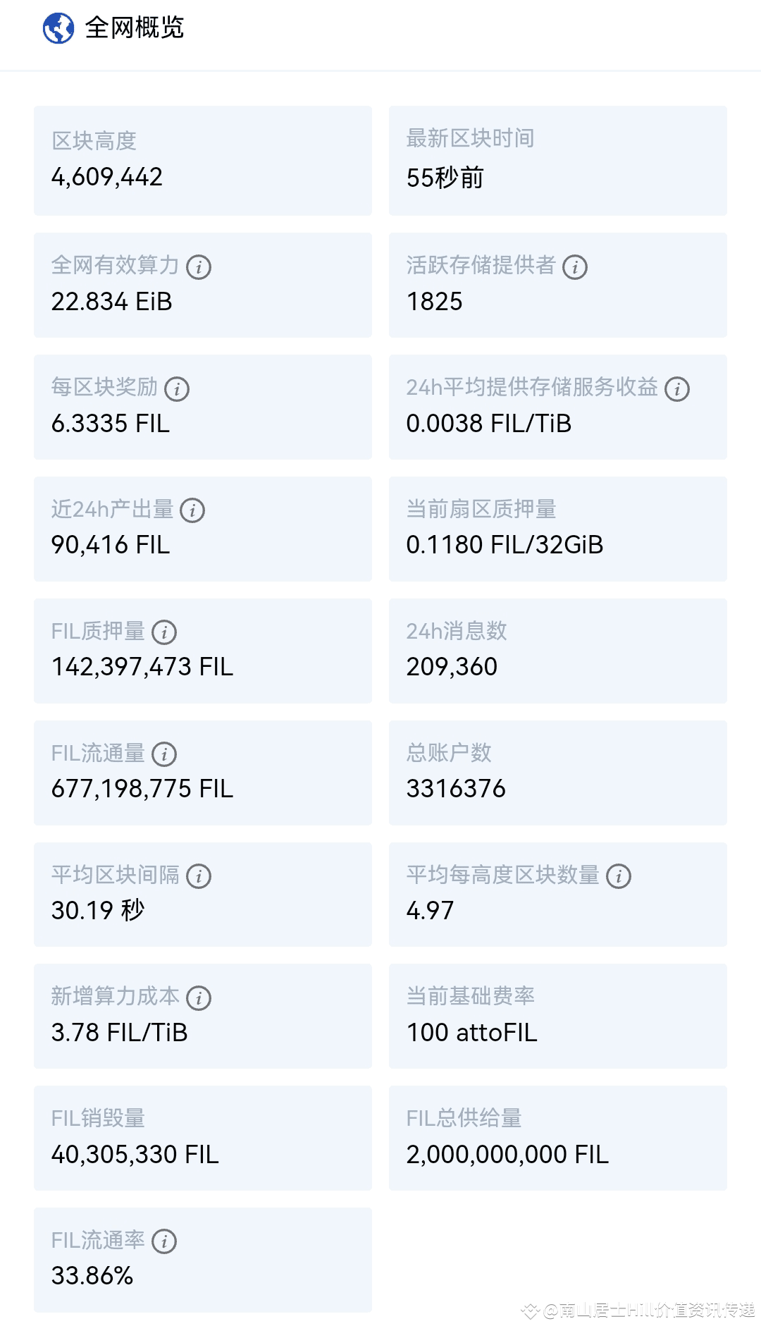 单个区块奖励下降到6.3335FIL(目前最低是6.3699FIL);单T收益为0.0038FIL(目前最低是0.0037FIL);单T质押3.776FIL(目前最低是3.776FIL);Gas为0.0003FIL(32G扇区);