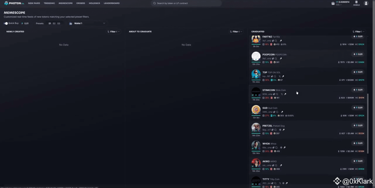 Today, we won't focus on the Newly Created and About to Graduate memecoins.