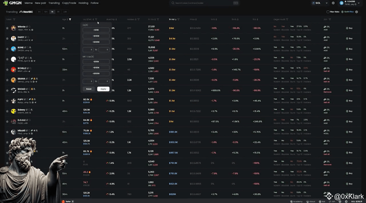 To begin with, just look at all the tokens you see, see if there is a trend and check what volumes are still in the market.