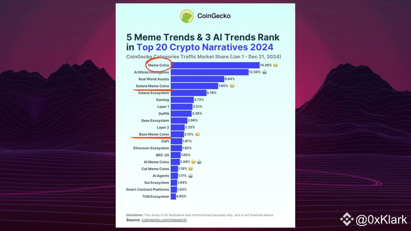 ✥ Their straightforward appeal and support from regular degens have enabled them to outshine many traditional "VC-backed altcoins," establishing themselves as a prominent narrative in the crypto space